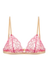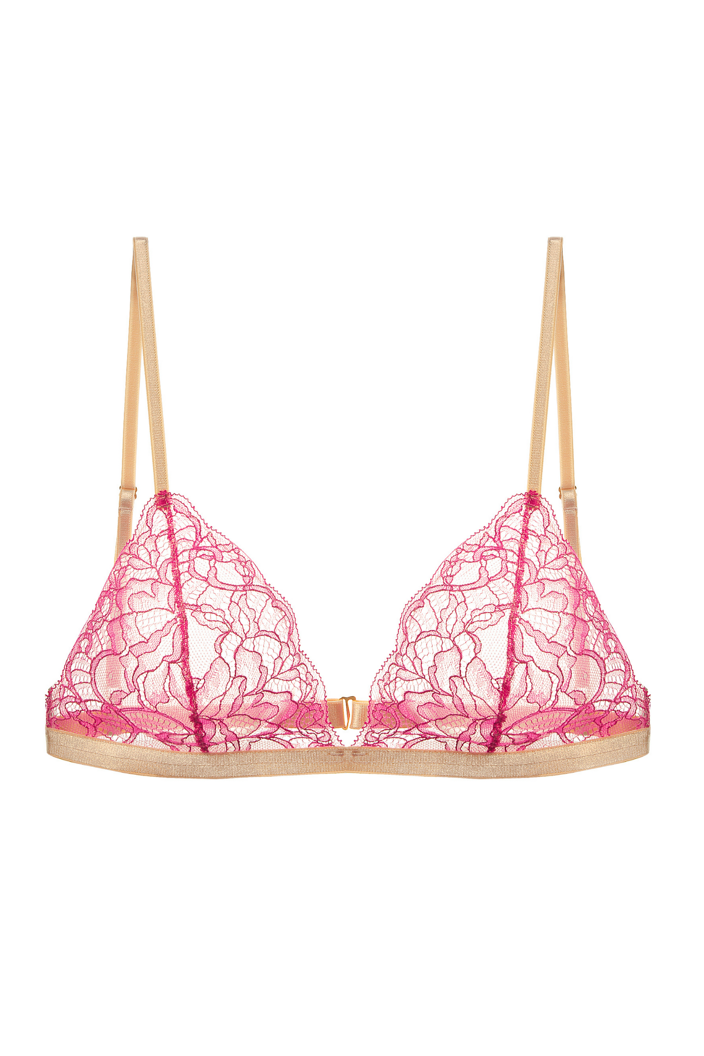 Dieser dunkelrosa BH von Gigi hat elegante Triangel-Cups. Die einzigartige Kombination aus Beige und Rosa sowie das detaillierte Spitzenmuster machen diesen BH zu einem atemberaubend schönen Dessous.