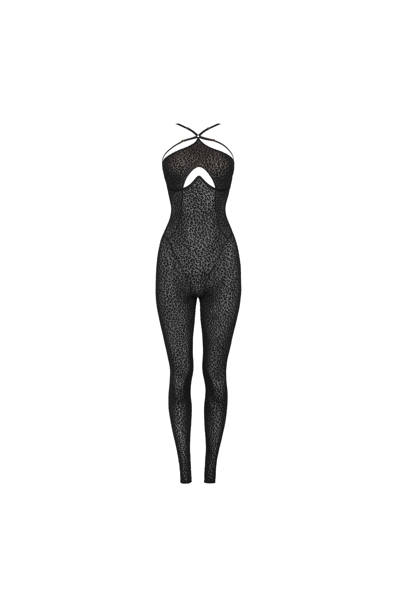 • Kombinezon Wild Panther – panterka, głęboki dekolt, połysk