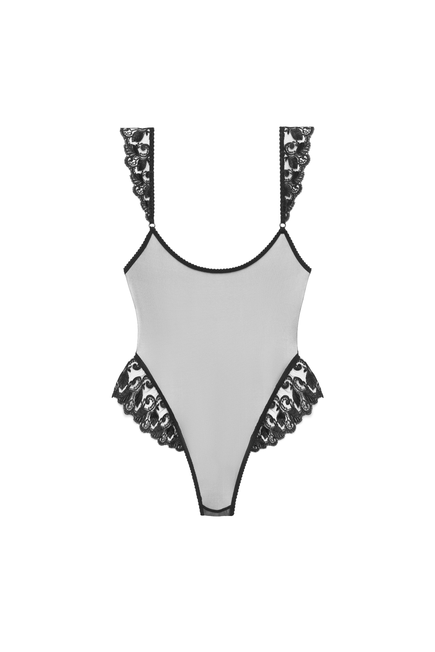 Il body di Khloe è la scelta perfetta per gli amanti dell'eleganza. Il delicato materiale in tulle e i ricami neri creano un look sorprendente e sofisticato. Il taglio alto offre il perfetto equilibrio tra stile e praticità.