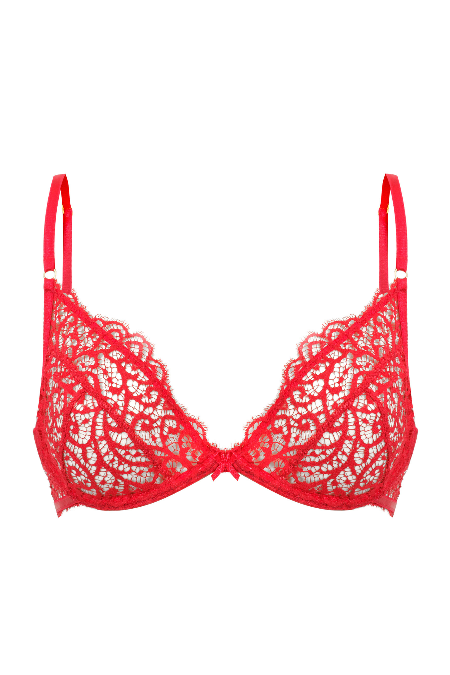 Biustonosz Chance Red to klasyka w nowoczesnym, zmysłowym wydaniu. Wykonany z francuskiej koronki o kwiatowym wzorze, model łączy subtelność i elegancję z funkcjonalnością i wygodą codziennego noszenia.