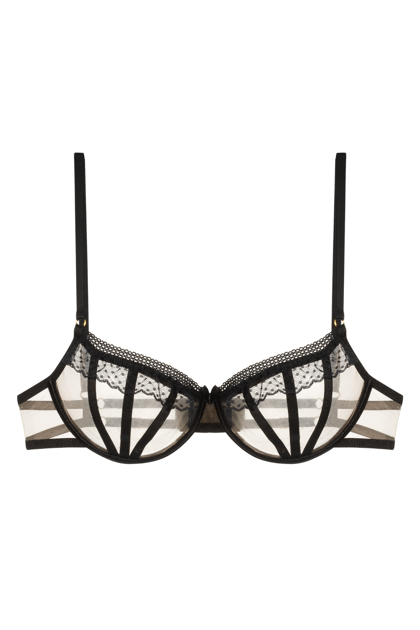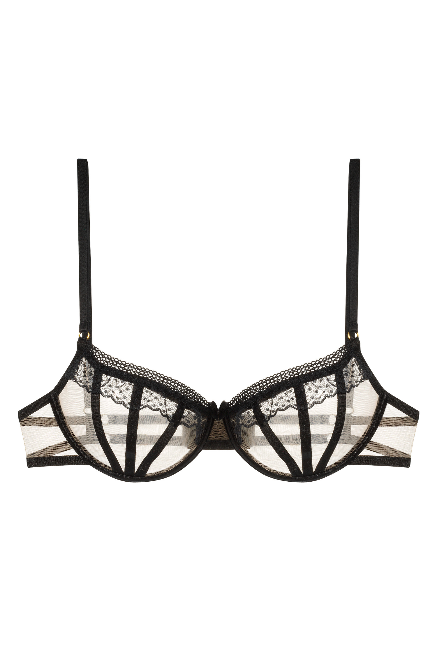 Biustonosz Pleasure oferuje doskonałe wsparcie i komfort dla każdej kobiety. Posiada miękki tiulowy materiał w połączeniu z czarnymi paskami na biuście, tworząc estetyczny wygląd. Biustonosz oferuje optymalne dopasowanie i elastyczność, zapewniając piękno i wygodę w jednym.